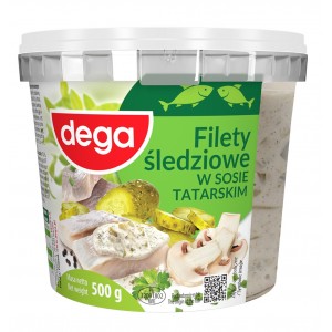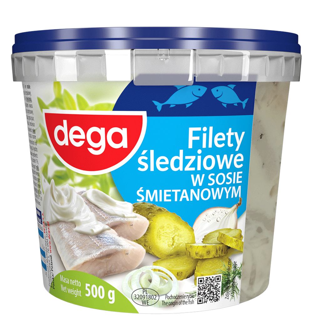 Wysoka zawartość filetów ze śledzia marynowanego wysokiej jakości w aromatycznej i kremowej śmietanie! Aksamitny śmietanowy sos z cebulką i jabłkiem doskonale przełamuje kwaśność śledzika i wyrazisty smak ogórka z nutą aromatycznych przypraw . Unikatowa receptura DEGA gwarantująca smak. Tradycja w nowoczesnym wydaniu !