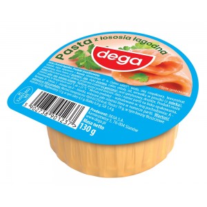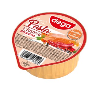Pasztet którego głównym składnikiem jest łosoś (44%) oraz koncentrat pomidorowy, kasza manna, jaja, przyprawy. Produkt sterylizowany. Może zawierać seler, soję, gorczycę.