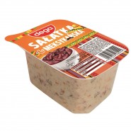 Powrót Dostępne gramatury 150 g 250 g propozycja podania sałatka a'la meksykańska 150g/250g Sałatka z warzywami 77%. Główne składniki to: ziemniaki, fasola 16%, marchew, ogórek, majonez i przyprawy.